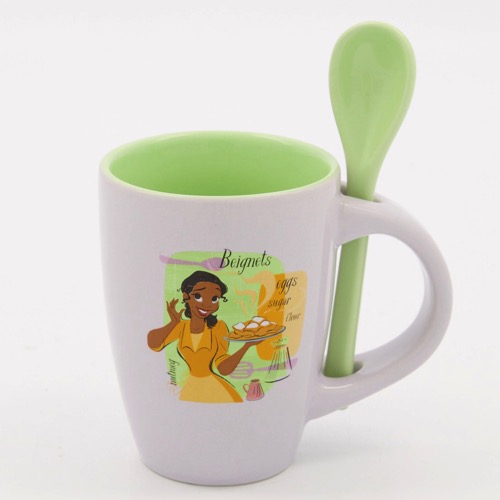Purple and green toned mug with spoon. Dishwasher safe.